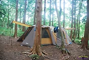봐둔 곳에 텐트를 설치한 모습입니다. 잔디밭이 약간의 경사가 있긴 했지만 전혀 문제가 되지는 않았습니다.