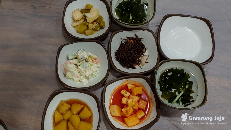 반찬은 이렇게 나옵니다. 개인적으로 반찬이 좀 많다는 생각이 듭니다. 시원한 미역국은 좋은데, 나머지 반찬 중에 두 가지 정도는 빼도 될 것 같습니다. 사실 아구찜을 두고 굳이 반찬에 손이 잘 가지 않더라고요, 물론 이 부분도 개인적인 생각이니 오해는 없으셨으면 합니다.