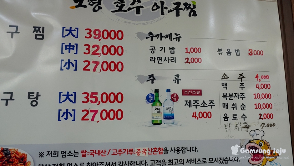 아마도 가장 큰 이유 중에 하나는 아구찜이라는 요리가 요즘 젊은 세대보다는 기성세대들이 즐겨 먹는 요리라는 것과 꼭 제주도가 아니어도 전국 어디든지 아구찜을 맛있게 하는 음식점은 얼마든지 있다는 것, 이 두 가지가 관광객이 없는 가장 큰 이유가 아닐까 싶습니다.