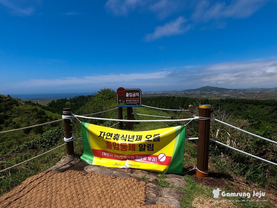 화산이 분출되면서 생성된 스코리아(송이)가 상당부분 흘러내리면서 정상부 훼손이 가속화되자 2015년8월1일, 생태계 복원을 위해 사람들의 탐방을 통제, 자연휴식년제를 단행하게 되었고 애초 2020년 7월31일까지 계획했던 휴식년제는 1년 추가로 연장하여 금년 8월15일까지 이어져 왔던 것입니다.