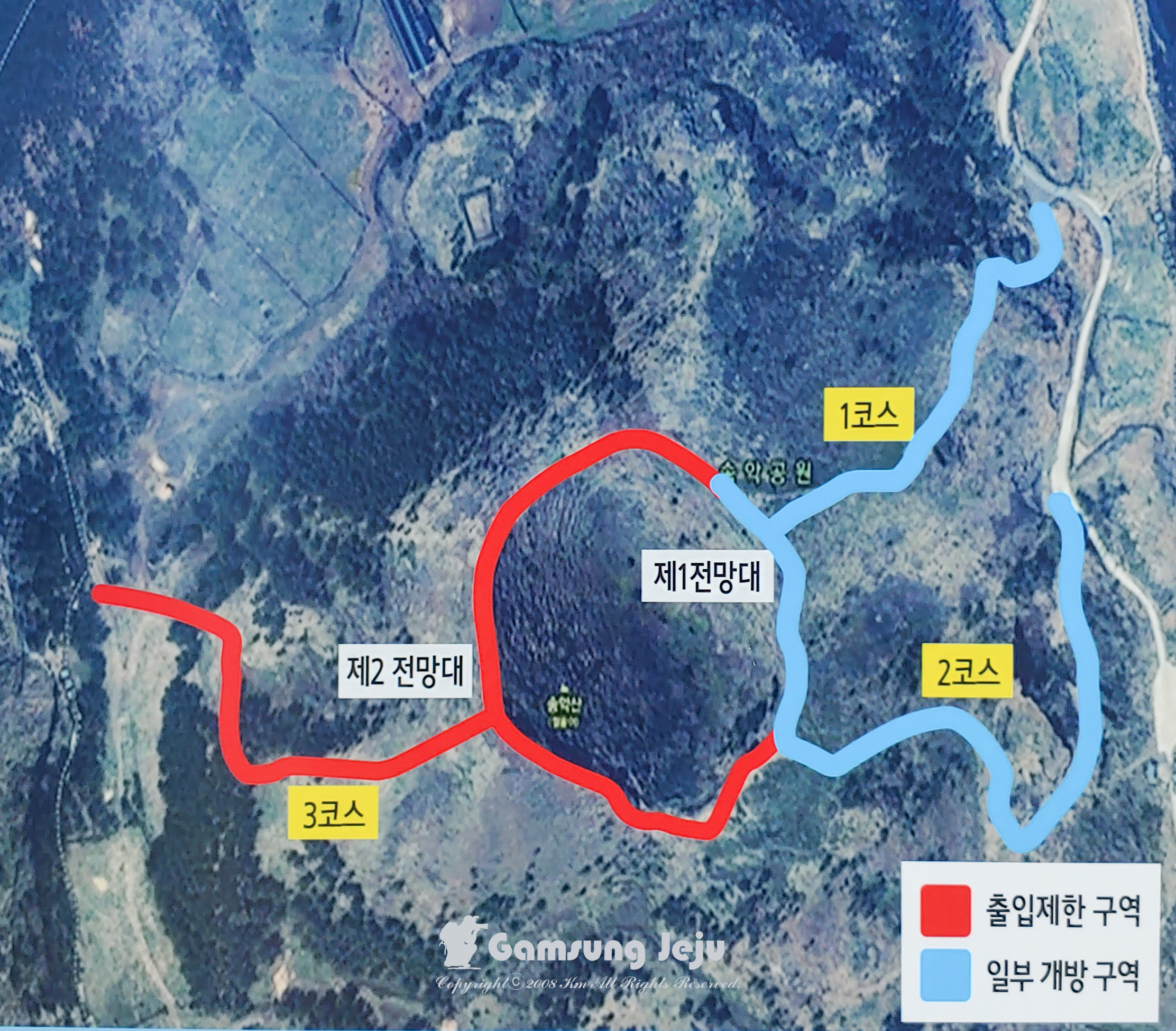 6년간의 자연휴식년제를 거치면서 일정부분 생태 복원을 마친 송악산 정상부가 드디어 일반인에 개방된 것입니다. 휴식년제를 시행해온 제주도에서는 8월 15일부터 일반인 출입을 금지했던 송악산 탐방로 일부 구간에 대한 자연휴식년제를 해제하고 출입을 허용했는데요, 송악산 탐방로 3개 코스 중에서 아직 복원이 덜된 3코스는 제외하고 동쪽 방향의 1코스와 남쪽으로 이어진 2코스 700여m 구간입니다.
