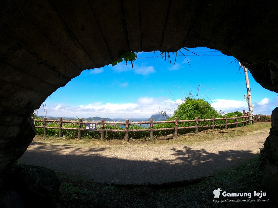 소나무가 많다 하여 붙여진 이름 송악산(松岳山) 또는 99봉(峰)이라고도 합니다. 송악산이 있는 곳은 모슬포입니다. 아픈 역사, 척박한 땅의 한 많은 제주사를 간직하고 있는 대표적인 곳 이도 합니다. 일제강점기의 슬픈 역사를 간직하고 있는 대표적인 곳, 오름의 산허리와 해안의 곳곳에는 20여개의 진지동굴과 고사포대 포진지 등 일제에 의한 쓰라린 상처가 수 없이 남아 있어 역사적 교육의 장소로도 활용되고 있습니다.