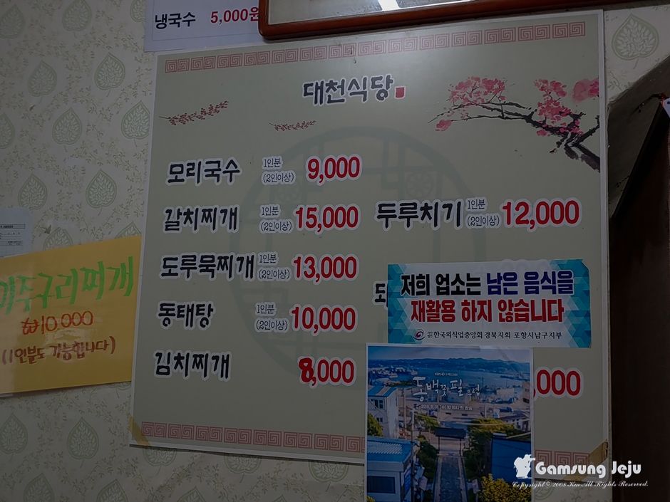 먹고 나서 보니 일인당 9천 원이라는 걸 생각하니 정말 가성비 측면에서 최고라는 생각이 들었고요, 혹시라도 포항 구룡포에 가실 일이 있다면 이곳에서 모리국수 꼭 드셔보시길 바랍니다. 무엇보다 주인장님 너무 친절하세요~~!!^^