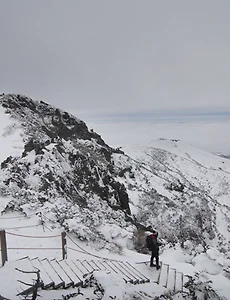 명품 한라산89 매화꽃이 활짝 핀 한라산, 그 이색 겨울에 취하다 제주도는 겨울철이라 하더라도 대체로 기온이 따뜻한 편이라 눈이 내렸어도 금방 녹아버리기 일쑤입니다. 올겨울은 유난히 그렇습니다. 한라산 또한 크게 다를 바 없는데요, 예년 같으면 겨울 첫눈 시기에 내린 눈이 봄까지 쌓여 있는 경우가 많은데, 올해는 녹고 쌓이고를 반복하는 것 같습니다. 눈을 좋아하고 한라산의 설경을 즐기는 저로서는 그리 좋은 현상은 아닌데요, 며칠 전에 대설주의보가 발효될 정도로 한라산에 눈이 왔다고 하여 또 한 번 부랴부랴 다녀왔습니다. 며칠 뜸들이다가 급격하게 눈이 녹아버리는 불상사가 벌어져선 안 되었기 때문입니다. 다시 한 번 다녀온 코스는 어리목~영실인데요, 짧은 시간에 한라산의 설경을 만끽하고 트래킹의 묘미를 느낄 수 있는 코스로는 그만이라는 생각입니다. 예년에는 성판악~관음사 .. 2016. 1. 18. 한라산 정상에서 맞이한 벅찬 감동의 새해 해돋이 한라산 정상에서 맞이한 벅찬 감동의 새해 해돋이 -일 년에 단 한번만 볼 수 있는 한라산 해돋이- 제주도 대부분의 지역에서는 새해 해돋이를 보질 못했네요. 제주도 전 지역에 드리운 구름 때문이었습니다. 제주도에서는 이름 있는 해돋이 명소를 찾았던 많은 사람들이 아쉬워 할 수밖에 없었는데요, 제주도에서는 오직 한곳, 한라산 정상에서 만큼은 너무나 감동적이고 화려한 새해 해돋이를 볼 수 있었습니다. 한라산 하면 해발 1950m, 대한민국에선 최고봉이라 할 수 있는데요, 구름을 뚫고 솟아있는 한라산의 정상 백록담, 그곳을 찾은 수천 명의 인파들은 구름바다 위로 솟아오르는 새해 첫 해돋이를 보면서 벅찬 감동과 소망을 빌었습니다. 대한민국 최고봉을 자랑하는 한라산이지만 한라산 정상에서 해돋이를 볼 수 있는 날은 .. 2016. 1. 2. 눈꽃여행, 한라산 종주등반 이렇게 하세요 눈꽃여행, 한라산 종주등반 이렇게 하세요 한라산 종주 코스로 눈꽃 여행을 알차게 즐기는 방법 눈이 하얗게 내린 한라산은 겨울철 제주 여행자들에겐 최고의 선물입니다. 셀 수도 없이 무한 아름다움이 존재하는 곳, 계절마다 독특한 멋을 뽐내는 한라산이지만, 무엇보다도 한라산의 백미는 설경입니다. 해발 1700고지대의 평원위에 끝없이 펼쳐진 설원, 여기에 제주특유의 파란하늘이 배경을 더해줘 입이 다물어지지 않은 환상적인 풍경을 선사하기 때문입니다. 한라산을 오르는 다섯 개의 등반코스는 거의 해발1600미터를 기점으로 울창한 숲을 벗어납니다. 백록담을 품고 있는 주봉을 중심으로 아주 광활한 평원이 길게 이어져 있는데, 눈이 수북이 쌓인 평원의 모습이 마치 잡지에서나 보던 만년설의 그것을 보는 듯 하여 히말라야를 .. 2015. 12. 21. 이승기도 극찬했던 사라오름의 설경 이승기도 극찬했던 한라산 최고의 비경, 사라오름의 겨울 한라산에서 최고의 비경을 간직한 곳, 사라오름 산 정상에 호수를 품고 있는 그림 같은 풍경, 우리나라에서는 한라산 백록담이 대표적인데요, 한라산 백록담 다음으로 높은 곳에 산정호수를 품고 있는 곳이 바로 사라오름입니다. 한라산 보호구역 안에 있는 오름으로서 불과 몇 년 전에야 일반에 공개되어 이제는 누구나 쉽게 갈수 있는 곳이며, 몇 년 전, 딱 이맘때쯤 KBS 해피선데이 1박2일에 소개가 되면서 많은 사람들이 찾고 있는 곳이기도 합니다. 해발1324미터 사라오름! 일 년 중 사라오름이 가장 신비스런 모습을 보일 때는 6월 우기에 접어들었을 때의 물이 가득 찬 호수에서 물안개가 피어오르는 모습, 그리고 바로 지금 하늘아래 정원인 드넓은 호수 전체가 .. 2015. 2. 16. 한라산 단풍 절정, 너무 화려해서 눈을 못 뜰 지경 한라산 단풍 절정, 너무 화려해서 눈을 못 뜰 지경 눈부신 한라산 단풍 2014년은 11월 1일이 절정에 이를 것이라고 합니다. 미리보는 한라산 단풍, 만사를 제쳐놓고 한라산을 다녀왔습니다. 마침 주말이라 수 천 명의 등산객들이 절정을 맞은 한라산의 단풍을 구경하려고 몰렸는데요, 가뜩이나 주차공간이 부족한 한라산이 큰 몸살을 앓았다는 소식도 들립니다. 평소에도 사람들로부터 인기가 많아 주차난에 허덕이는데, 이번처럼 등산객들이 몰릴 것이라고 예상되는 날에는 자가운전을 피하고 대중교통을 이용해주면 좋으련만 그게 바람처럼 쉽지가 않네요. 단풍은 산 전체를 기준으로 하여 20%가량이 물들었을 때를 단풍의 시작이라 하고, 80%가량이 물들었을 때 단풍이 절정에 이르렀다고 합니다. 어제가 바로 한라산 단풍이 절정을.. 2013. 10. 28. 한라산에서 만난 고양이 한라산에서 만난 고양이 영하 15도의 한라산에 사는 고양이 어제는 전국적으로 엄청나게 추운 하루였지요. 제주도의 한라산에도 강추위가 몰아쳤는데요, 한라산 정상 백록담에서의 체감온도는 영하 20도는 되어 보이더군요. 여기에 강하게 바람이 불다보니 백록담 근처에는 가만히 서있기 조차 힘든 날씨였답니다. 예보에 의하면 간혹 햇볕은 보일 것이라 예상했는데, 등산하는 내내 잿빛으로 뒤 덥힌 한라산의 날씨, 오랜만에 악천후의 짜릿(?)한 산행을 마치고 집으로 돌아오니 완전 녹초가 되어 버렸습니다. 잘 다녀왔냐는 아내의 말에